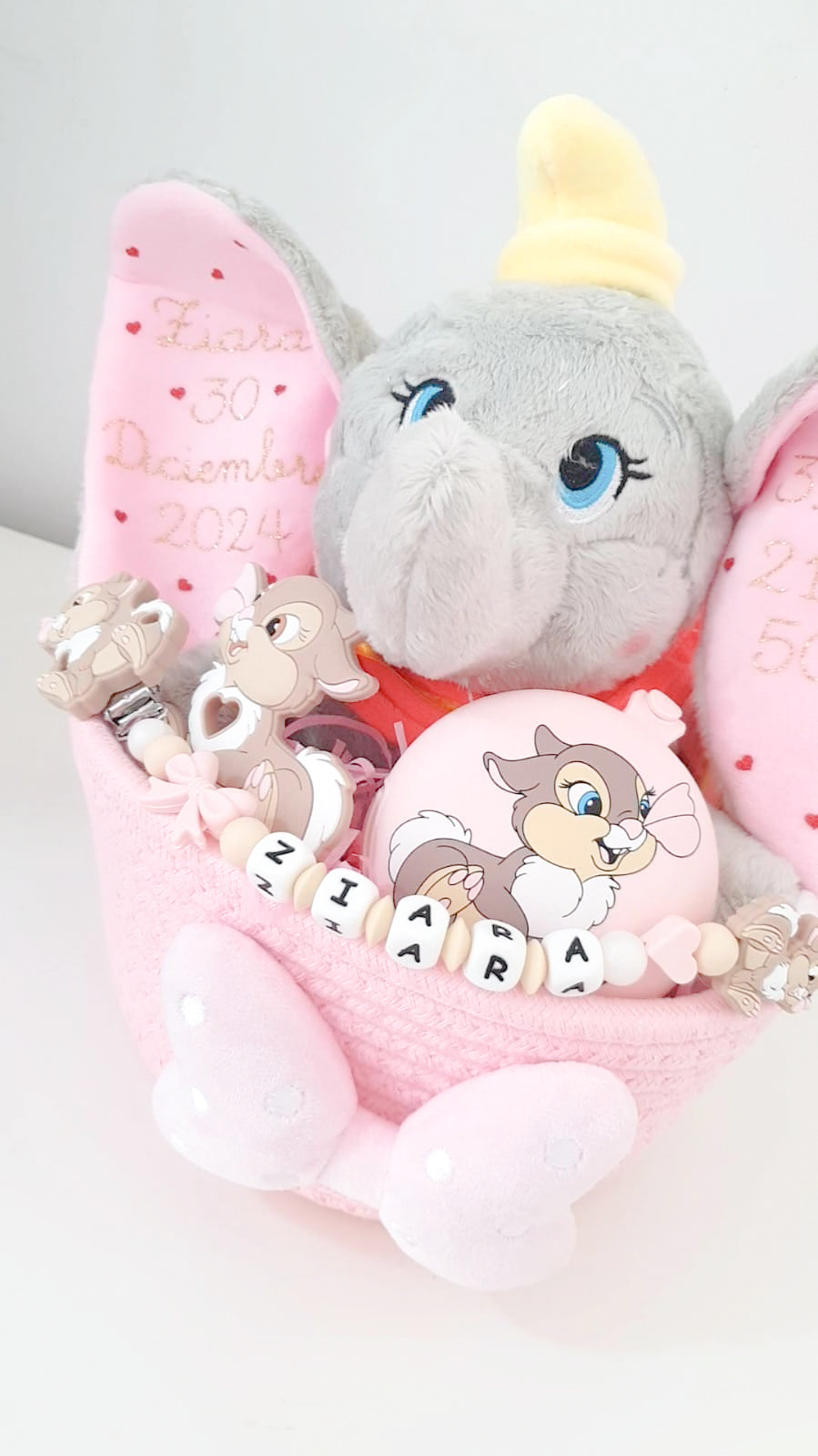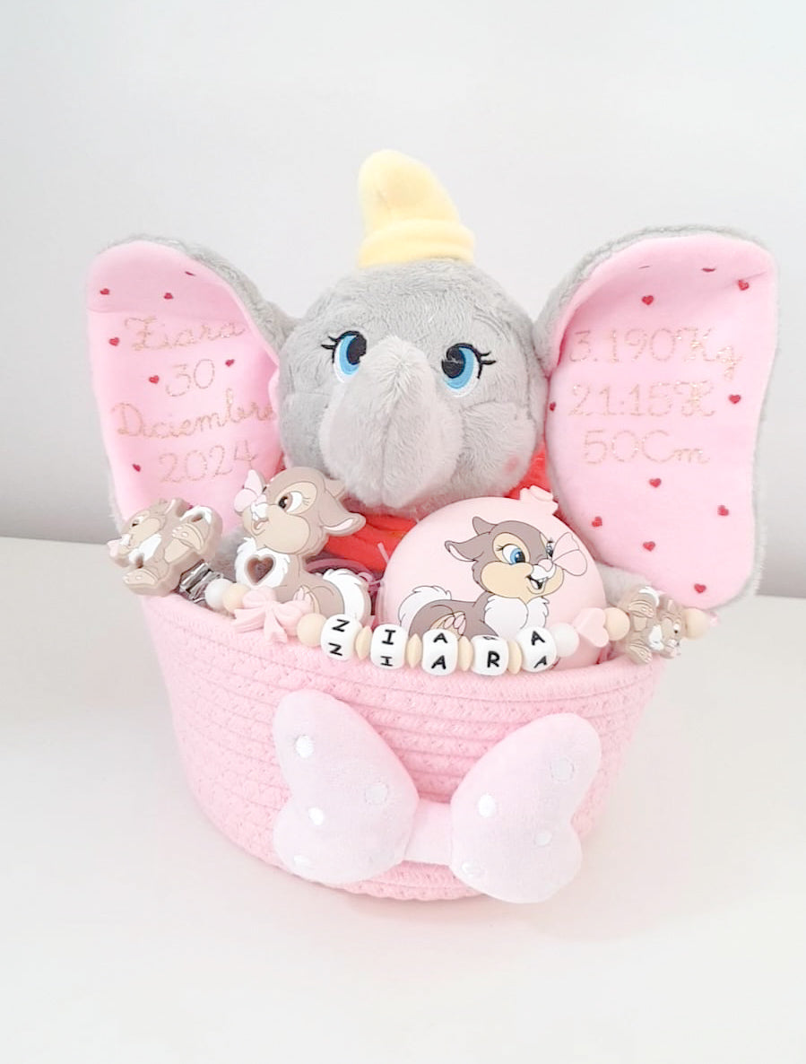 ¡Prepárate para derretirte de ternura! Esta preciosa canastita personalizada es el regalo perfecto para dar la bienvenida al mundo a una personita muy especial. Encabezada por un adorable elefantito con orejas gigantes llenas de amor (¡literalmente!), en las que están grabadod los datos más importantes del gran día: Día , hora, peso y medidas 🐘💕
